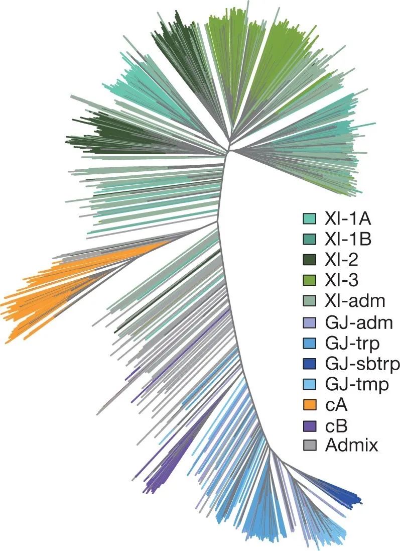 2021年11月發(fā)表在《Nature》上的“3,366份鷹嘴豆種質(zhì)遺傳變異圖譜研究”,通過對鷹嘴豆全球種質(zhì)資源進(jìn)行全基因組重測序和分析,構(gòu)建了鷹嘴豆遺傳變異的完整圖譜,代表了全球鷹嘴豆的遺傳多樣性,并揭示了鷹嘴豆的起源和馴化路線,闡釋了分子育種在鷹嘴豆中的應(yīng)用,為鷹嘴豆的育種實(shí)踐提供良好的遺傳資源。