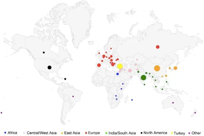 2021年8月發(fā)表在《PNAS》上的“10,038份辣椒群體基因組分析”,調(diào)查了野生和馴化辣椒的基因組多樣性和種群結(jié)構(gòu),追溯了進(jìn)化路線,并提供了一個(gè)反映人類貿(mào)易和歷史/文化影響的辣椒傳播模型。本結(jié)果突出了西-東擴(kuò)張路線,揭示了南美洲和中美洲、非洲以及東亞/南亞之間的聯(lián)系,后兩者構(gòu)成了辣椒多樣性的重要多樣化中心。最后,文章提出了種質(zhì)資源庫管理的思路和未來種質(zhì)資源開發(fā)利用的方向。
