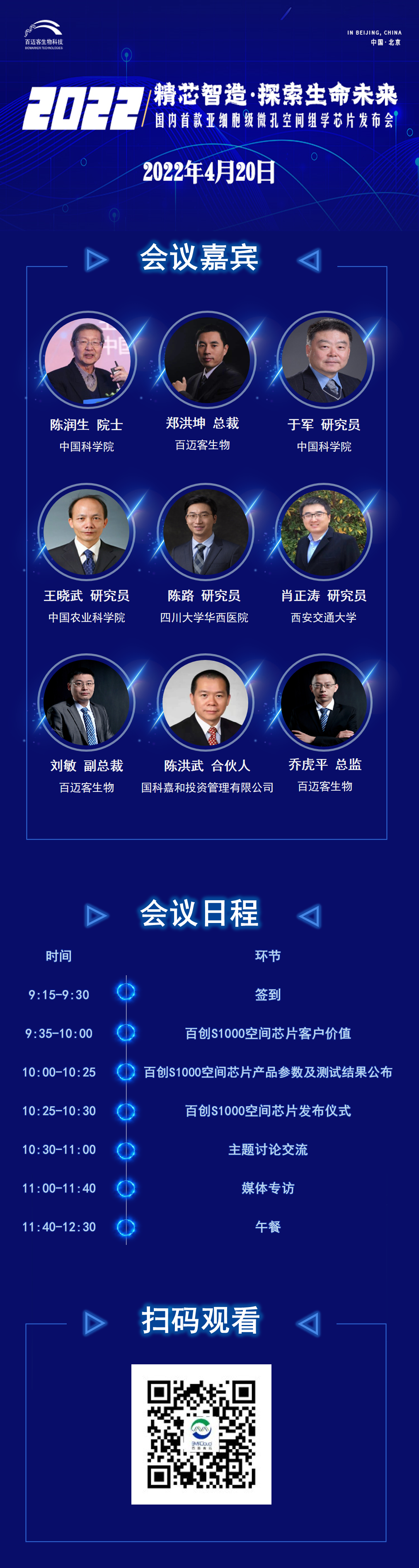 將于4月20日正式推出 百創(chuàng)S1000亞細(xì)胞級微孔空間組學(xué)芯片,屆時(shí)我們將帶著百創(chuàng)S1000空間芯片及其結(jié)果展現(xiàn)在您的眼前,您將感受到國產(chǎn)化空間轉(zhuǎn)錄組測序芯片新的震撼體驗(yàn)。