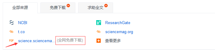 打開http://xueshu.baidu.com/,輸入文獻(xiàn)題目,回車,則出現(xiàn)文獻(xiàn)的詳細(xì)信息頁面,下拉會看到全部來源,點擊后面帶“全網(wǎng)免費下載”字樣的,跳轉(zhuǎn)至PDF下載界面,輕松獲得文獻(xiàn)。但是,多數(shù)情況下百度學(xué)術(shù)里面沒有免費的PDF下載資源,這時仍推薦sic-hub。