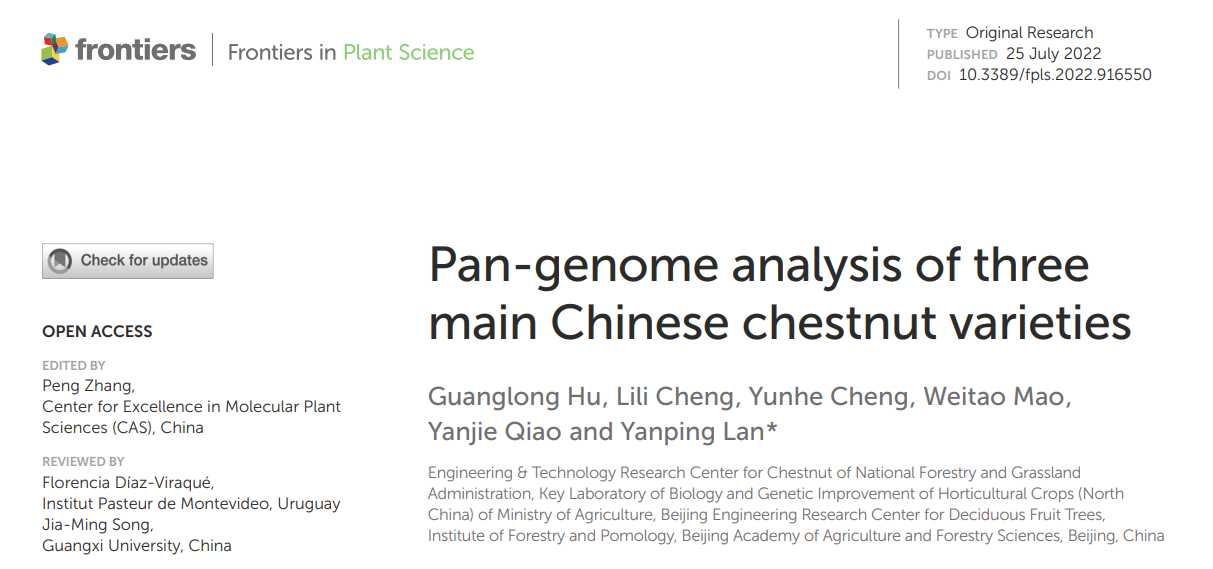 近日,北京市農(nóng)林科學(xué)院林業(yè)果樹研究所蘭彥平團(tuán)隊(duì)在《Frontiers In Plant Science》在線發(fā)表了題為“Pan-genome analysis of three main Chinese chestnut varieties”的研究論文。百邁客有幸為該研究提供板栗基因組測(cè)序組裝工作。