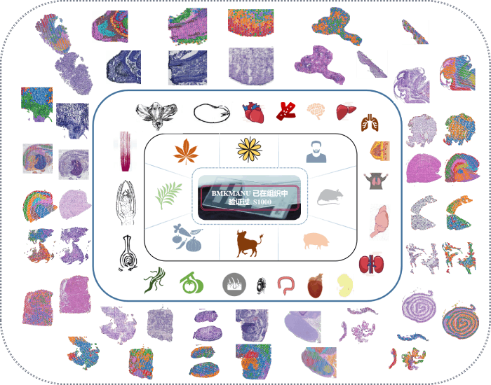 空間轉(zhuǎn)錄組從組織切片、染色到組織透化的實驗過程,也直接關(guān)系到分析數(shù)據(jù)的質(zhì)量,百邁客實驗人員經(jīng)過大量的項目積累,創(chuàng)建了動植物組織優(yōu)化標準體系,保證組織優(yōu)化結(jié)果準確判讀,可提供高質(zhì)量的報告數(shù)據(jù),目前實測組織類型100+種,包括人、小鼠、大鼠、果蠅、牛等物種的腫瘤樣本、胚胎樣本、肝臟樣本、肺部樣本、腦部樣本等組織類型,尤其是突破了動物血管、軟骨、皮膚類組織的切片、透化難點,為高質(zhì)量數(shù)據(jù)分析提供了保障。