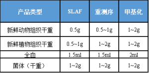 3、三代DNA類產(chǎn)品建議組織送樣量