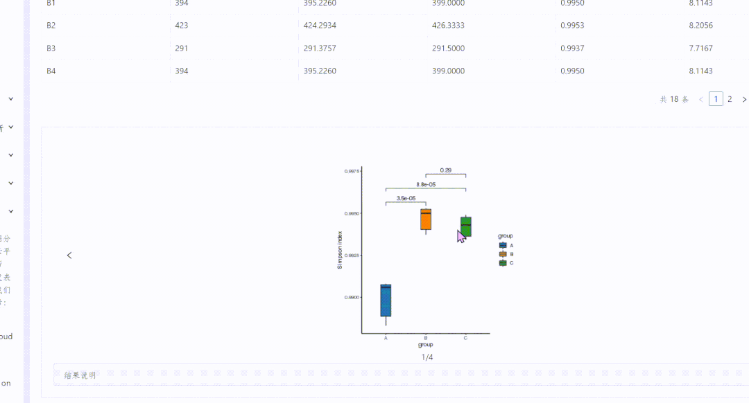 Alpha多樣性用來反映單個(gè)樣本的物種豐富度和多樣性,可同時(shí)做組間差異分析,支持全圖自定義、線圖/小提琴圖切換、差異p值或*的體現(xiàn)等。
