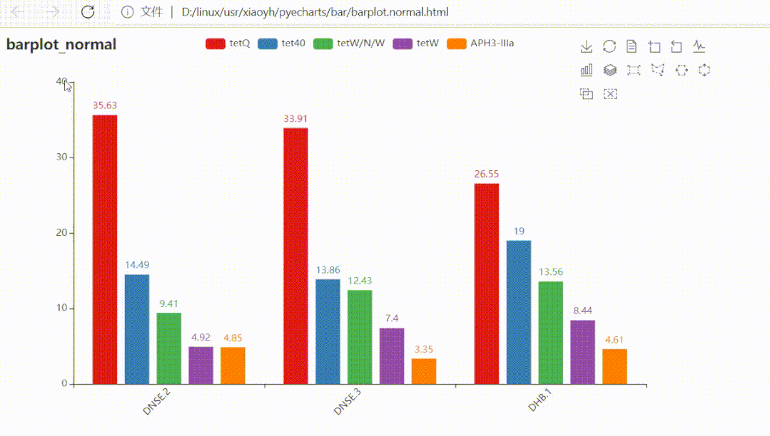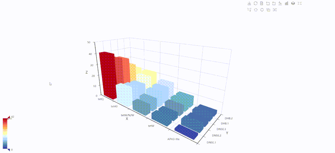 一次繪圖,多圖自由轉(zhuǎn)換。排列柱狀圖、堆疊柱狀圖、排列點(diǎn)線圖、堆疊點(diǎn)線圖、3D柱狀圖等互相自由切換。同時(shí),只需點(diǎn)擊下legend圖例,即可取消掉過多的展示項(xiàng),從而達(dá)到重新繪制的目的。滾動(dòng)下鼠標(biāo),即可隱藏過多的樣品展示。