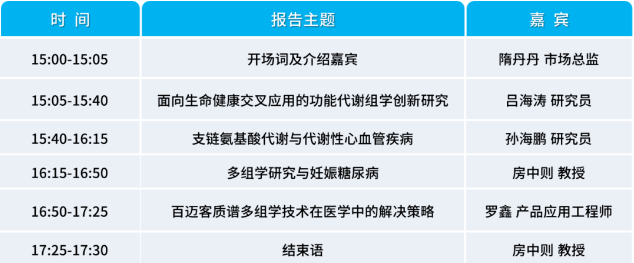 2023年3月22日中國(guó)生物物理學(xué)會(huì)腸道菌群分會(huì)房中則副秘書(shū)長(zhǎng)牽頭與百邁客生物聯(lián)合舉辦“?質(zhì)譜技術(shù)與多組學(xué)前沿應(yīng)用線上研討會(huì)”。本次研討會(huì)由百邁客醫(yī)學(xué)市場(chǎng)總監(jiān)隋丹丹主持,邀請(qǐng)了上海交通大學(xué)系統(tǒng)生物醫(yī)學(xué)研究院呂海濤研究員,天津醫(yī)科大學(xué)孫海鵬研究員,天津醫(yī)科大學(xué)房中則教授,共同探討質(zhì)譜多組學(xué)技術(shù)在疾病研究中應(yīng)用。