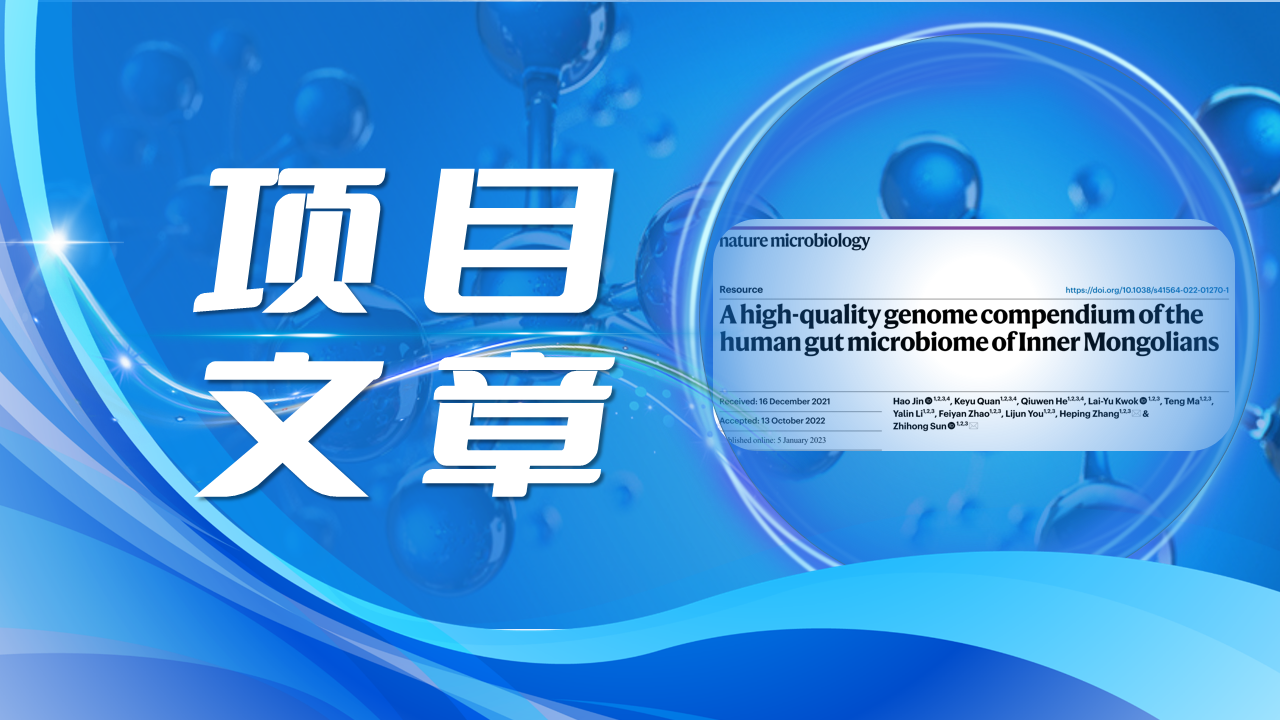 2023年1月5日,內(nèi)蒙古農(nóng)學(xué)大學(xué)張和平教授和孫志宏研究員團(tuán)隊(duì)在微生物領(lǐng)域國(guó)際期刊《Nature Microbiology》(IF:30.964)上發(fā)表了題為“A high-quality genome compendium of the human gut microbiome of Inner Mongolians(“內(nèi)蒙古人腸道菌群的高質(zhì)量基因組簡(jiǎn)編”)的研究論文。該研究基于一項(xiàng)益生菌(Probio-M8)發(fā)酵乳人群干預(yù)實(shí)驗(yàn),采用混合長(zhǎng)讀(ONT)和短讀HiSeq測(cè)序來表征60名內(nèi)蒙古人的糞便菌群,基于分箱的宏基因組分析策略和方法,構(gòu)建了內(nèi)蒙古人腸道高質(zhì)量基因組數(shù)據(jù)庫(IMGG)。百邁客為該研究提供了ONT宏基因組測(cè)序服務(wù)。