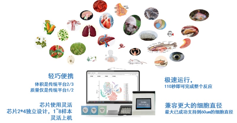 目前百創(chuàng)智造自主研發(fā)的單細(xì)胞微液滴系統(tǒng)-BMKMANU DG1000,是基于微流控、油滴包裹和Barcode標(biāo)記等技術(shù)來(lái)實(shí)現(xiàn)高通量的細(xì)胞捕獲,除了110s快速形成油包水(GEMs)結(jié)構(gòu)外,還有配套的2×4的獨(dú)立芯片及配套試劑盒,能兼容60μm的細(xì)胞直徑。目前BMKMANU DG1000已經(jīng)在上百例動(dòng)植物樣本中得到實(shí)測(cè)效果驗(yàn)證。
