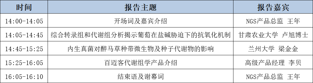 2023年9月8日,百邁客生物誠邀質(zhì)譜技術(shù)研究領(lǐng)域的優(yōu)秀博士舉辦“質(zhì)譜技術(shù)引領(lǐng)多組學(xué)新時代”博士沙龍研討會。本次研討會由百邁客農(nóng)學(xué)NGS市場部副總監(jiān)王年主持,邀請了甘肅農(nóng)業(yè)大學(xué)園藝學(xué)院盧旭博士和蘭州大學(xué)草地農(nóng)業(yè)科技學(xué)院梁金金,分別以《綜合轉(zhuǎn)錄組和代謝組分析揭示葡萄在鹽堿脅迫下的抗氧化機(jī)制》和《內(nèi)生真菌對醉馬草種帶微生物及種子代謝物的影響》為主題,共同探討質(zhì)譜多組學(xué)技術(shù)在農(nóng)學(xué)研究中的應(yīng)用。