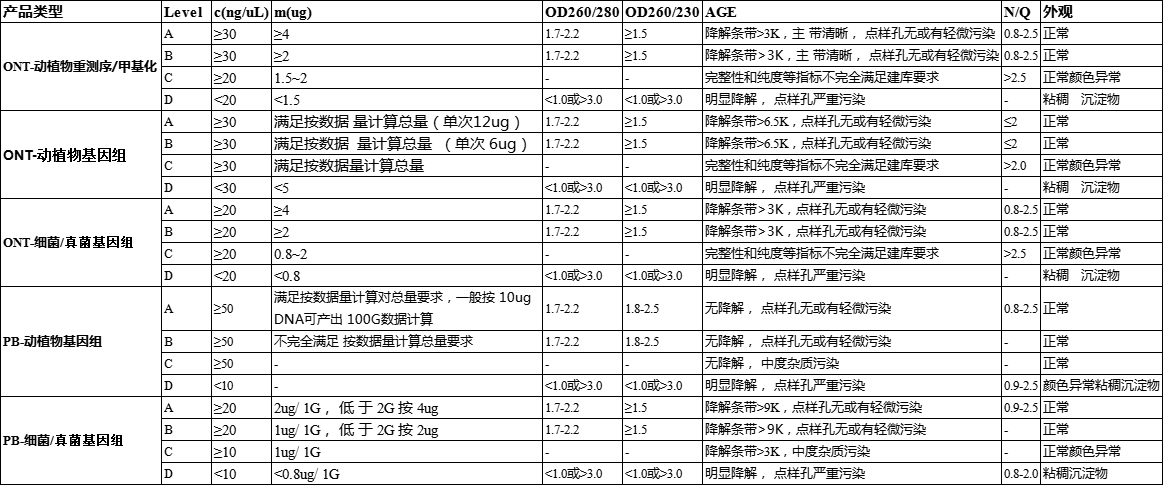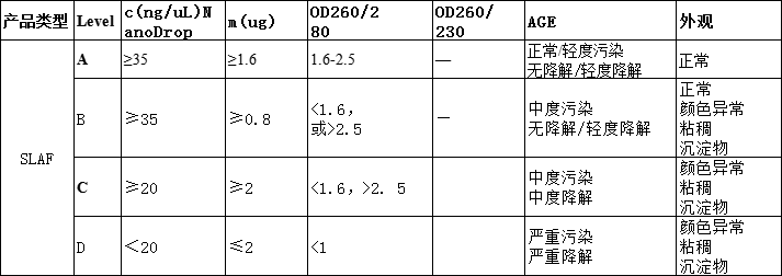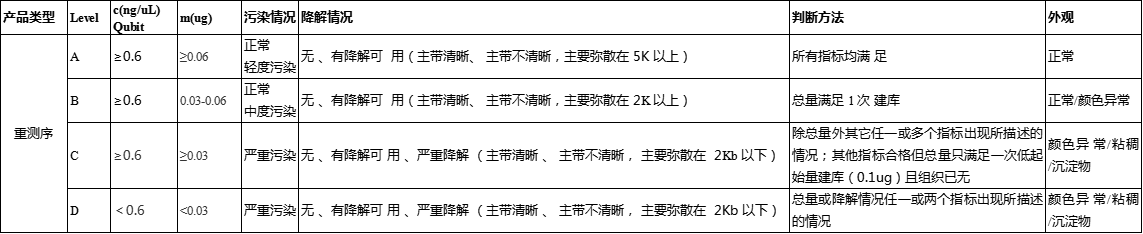 level D:質(zhì)量完全不滿足建庫測(cè)序要求,不建議使用的樣品。