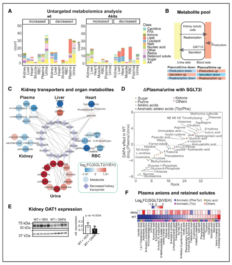 圖2-綜合蛋白質(zhì)組/相互作用組分析表明SGLT2i對腎臟代謝產(chǎn)物轉(zhuǎn)運的廣泛重塑