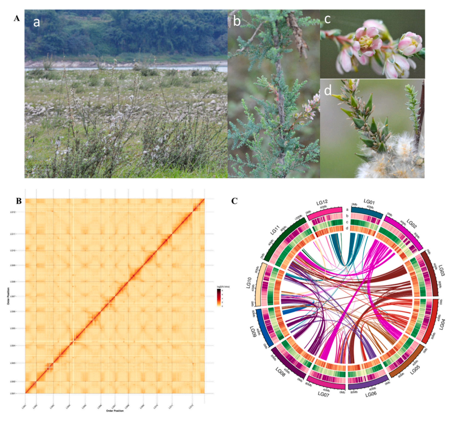 近日,由西南大學(xué)、重慶市林業(yè)科學(xué)研究院、重慶城市管理職業(yè)學(xué)院團(tuán)隊合作完成的項目成果《?Chromosome-scale?genome?assembly?clarifies?the?mechanism?of?flooding?tolerance?and?evolutionary?history?of?Myricaria?laxiflora》在《科學(xué)引文索引》(SCI)一區(qū)TOP期刊上“Industrial?Crops?&?Products”發(fā)表。該研究報道了水柏枝屬染色體水平基因組,并從形態(tài)學(xué)、生理學(xué)、比較基因組等多個角度揭示了疏花水柏枝在淹沒的環(huán)境適應(yīng)性和遺傳機(jī)制,為檉柳科物種種質(zhì)資源的保護(hù)和資源的開發(fā)利用提供了指導(dǎo)。