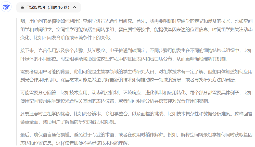 于是,我問DeepSeek:植物如何利用時(shí)空組學(xué)進(jìn)行光合作用研究?