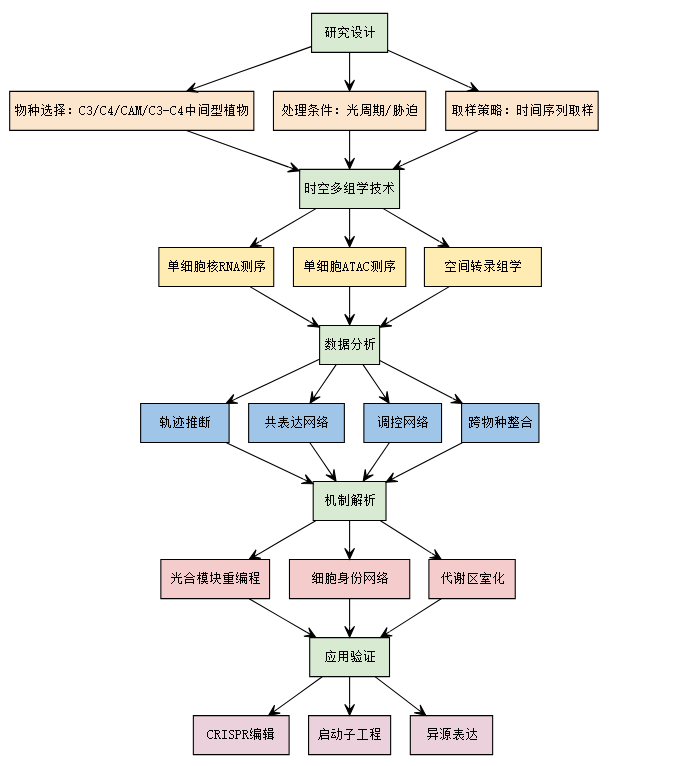 根據(jù)上述文獻(xiàn),可以總結(jié)出應(yīng)用時(shí)空組學(xué)解析植物光合作用機(jī)制常用思路的技術(shù)路線圖。