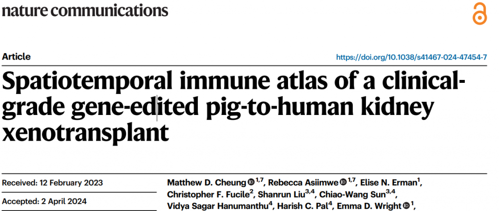 6. Cheung MD, et al. Spatiotemporal immune atlas of a clinical-grade gene-edited pig-to-human kidney xenotransplant. Nat Commun. 2024 Apr 11;15(1):3140.