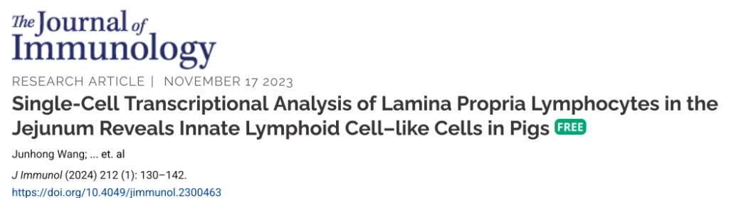 7. Wang J, et al. Single-Cell Transcriptional Analysis of Lamina Propria Lymphocytes in the Jejunum Reveals Innate Lymphoid Cell-like Cells in Pigs. J Immunol. 2024 Jan 1;212(1):130-142.