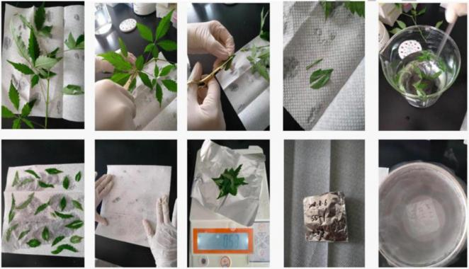 7)葉片剪下后的稱量等操作,請(qǐng)?jiān)?10min 內(nèi)完成,時(shí)間過長會(huì)導(dǎo)致葉片失水不可用,部分地區(qū)氣溫較高失水更快,操作時(shí)間需更短