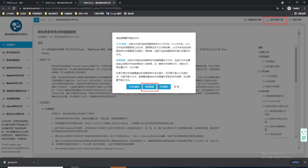 6 新報(bào)告結(jié)果下載:打開(kāi)新的報(bào)告,點(diǎn)擊這份報(bào)告的右上角-項(xiàng)目結(jié)果下載-進(jìn)行下載結(jié)果數(shù)據(jù),就可以得到更新的這份報(bào)告的全部結(jié)果。
