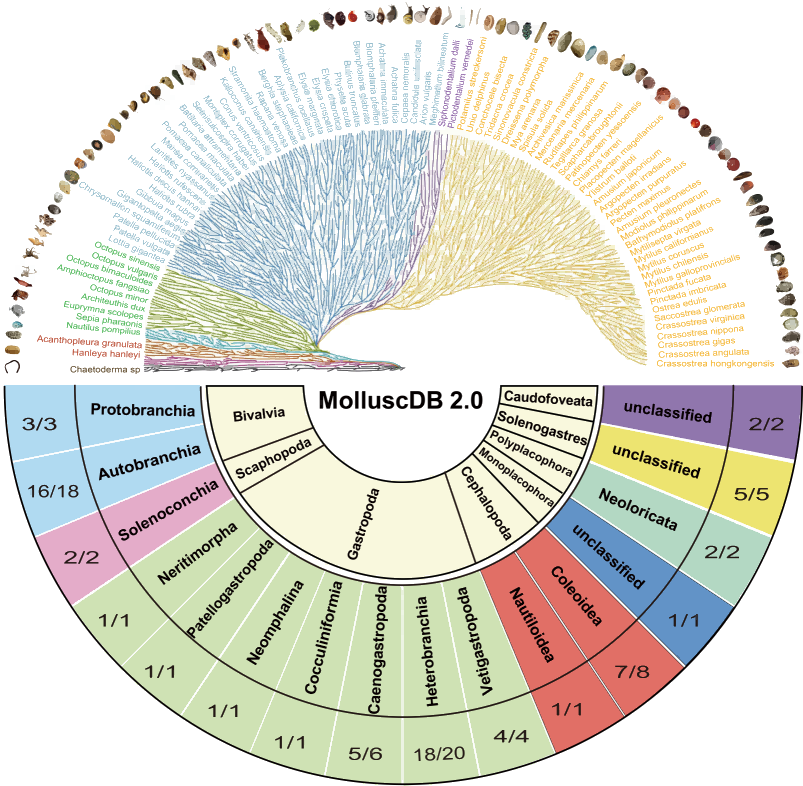 圖2-MolluscDB 2.0數(shù)據(jù)庫物種分類和覆蓋情況總覽