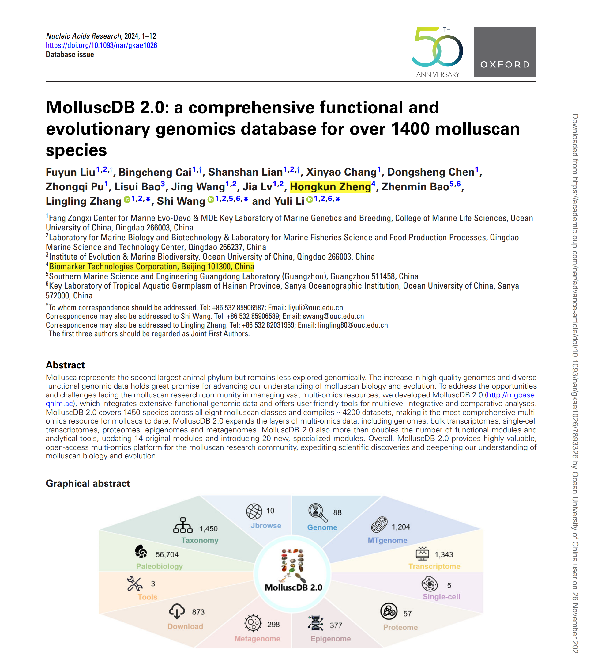 百邁客生物助力院士團(tuán)隊(duì)成功構(gòu)建軟體動(dòng)物功能和進(jìn)化基因組學(xué)綜合數(shù)據(jù)庫MolluscDB 2.0 http://m.melodyktv.com.cn/archives/33476 Wed, 27 Nov 2024 02:21:16 +0000 http://m.melodyktv.com.cn/?p=33476 中國海洋大學(xué)“海洋生物遺傳學(xué)與育種”教育部重點(diǎn)實(shí)驗(yàn)室、方宗熙海洋生物進(jìn)化與發(fā)育中心包振民院士和王師教授團(tuán)隊(duì)在國際生物信息數(shù)據(jù)庫領(lǐng)域頂刊Nucleic Acids Research在線發(fā)表了軟體動(dòng)物功能和進(jìn)化基因組學(xué)綜合數(shù)據(jù)庫“MolluscDB 2.0: a comprehensive functional and evolutionary genomics database for over 1400 molluscan species”(MolluscDB 2.0:面向超過1400個(gè)軟體動(dòng)物種類的功能和進(jìn)化基因組學(xué)綜合數(shù)據(jù)庫)。