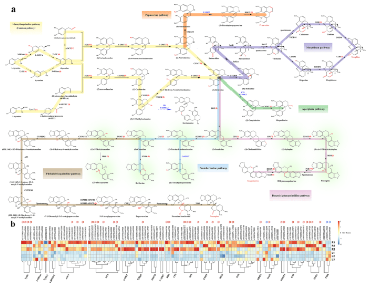 對合成原小檗堿型芐基異喹啉生物堿的相關(guān)基因進(jìn)行了挖掘,為后期利用合成生物學(xué)與植物代謝工程生產(chǎn)延胡索中具有鎮(zhèn)痛效果的痕量化合物奠定了基礎(chǔ)。
