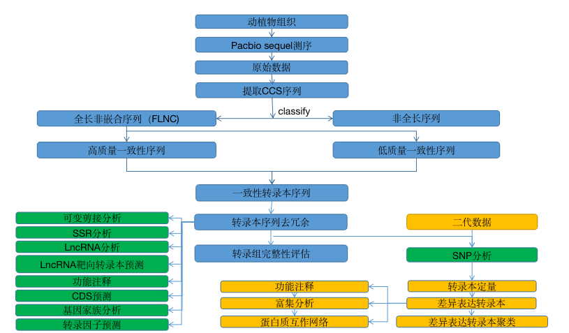 全長轉(zhuǎn)錄組研究是理解生物機體功能的一個重要途徑。傳統(tǒng)二代轉(zhuǎn)錄組測序無法直接獲得單個RNA分子由5ˊ到3ˊ的全部序列?;赑acBio三代測序平臺的轉(zhuǎn)錄組研究,無需打斷,直接讀取反轉(zhuǎn)錄的全長cDNA,能夠有效的獲取高質(zhì)量的單個RNA分子的全部序列,準確辨別二代測序無法識別的同源異構(gòu)體(isoform)、同源基因、超家族基因或等位基因表達的轉(zhuǎn)錄本。