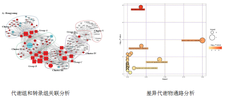 ??????生物體的表型由?DNA、RNA、蛋白質(zhì)及代謝物等各個(gè)層面調(diào)控決定,mRNA?研究可以獲得樣本之間差異基因、復(fù)雜調(diào)控網(wǎng)絡(luò),而基因與表型不能直接關(guān)聯(lián),難以鑒定控制關(guān)鍵途徑的結(jié)構(gòu)及調(diào)控基因,結(jié)合代謝組,輔助時(shí)序表達(dá)的眾多基因進(jìn)行”共表達(dá)”分析,揭示基因功能,并將基因與表型關(guān)聯(lián)起來,快速鑒定核心調(diào)控網(wǎng)絡(luò),確定關(guān)鍵候選基因。