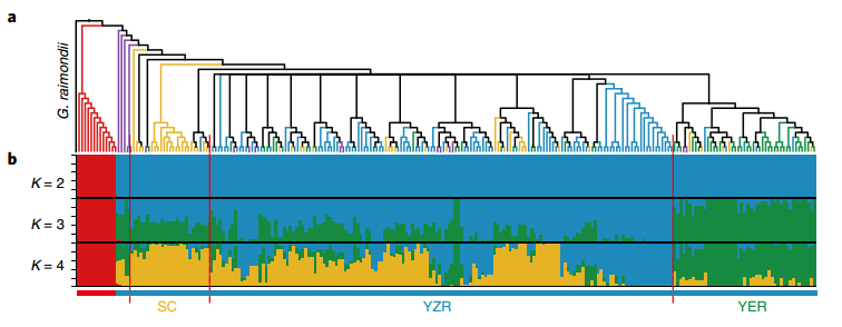 圖2 二倍體棉群體進化和群體結(jié)構(gòu)分析