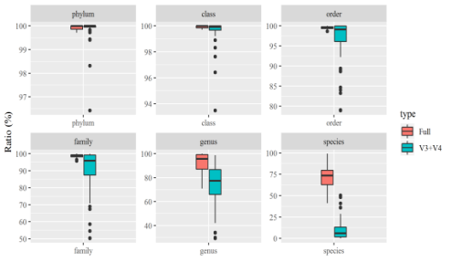 全長微生物多樣性最主要優(yōu)勢為種水平注釋率高,三代測序技術(shù)可以實(shí)現(xiàn)多多個(gè)高變區(qū)進(jìn)行測序,能夠更為準(zhǔn)確的還原群落結(jié)構(gòu)。