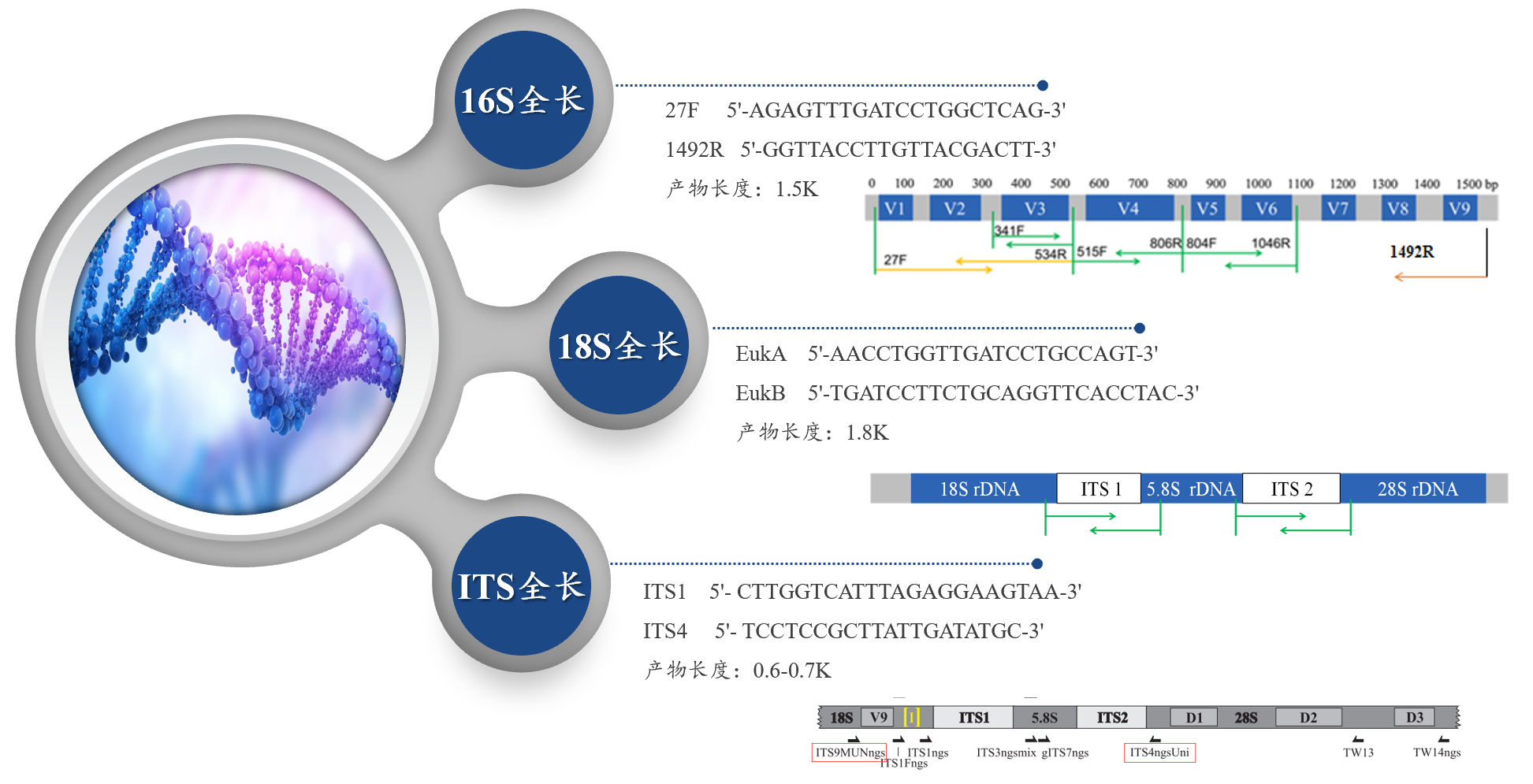18S全長 | EukA | 5′-AACCTGGTTGATCCTGCCAGT-3′ | 1.8K | |