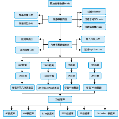 全基因組重測序(whole genome sequencing,WGS)對全基因組進(jìn)行測序掃描,能在全基因組范圍之內(nèi)解讀所有常見和稀有變異信息,全面檢測單核苷酸多態(tài)位點(diǎn)(Single Nucleotide Polymorphisms, SNP)、插入缺失位點(diǎn)(Insertion Deletion, InDel)、結(jié)構(gòu)變異(Structure Variation,SV)以及拷貝數(shù)變異(Copy Number Variation, CNV)。