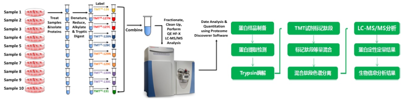 不同樣本標(biāo)記后混樣,統(tǒng)一處理、上機(jī),與非標(biāo)記定量樣本單獨(dú)處理、上機(jī)比較,減少了樣本處理和上機(jī)造成的實(shí)驗(yàn)誤差,提供了定量的準(zhǔn)確性和重復(fù)性。
